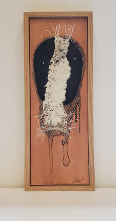 papier, poudre de cellulose, acrylique, brou de noix.
